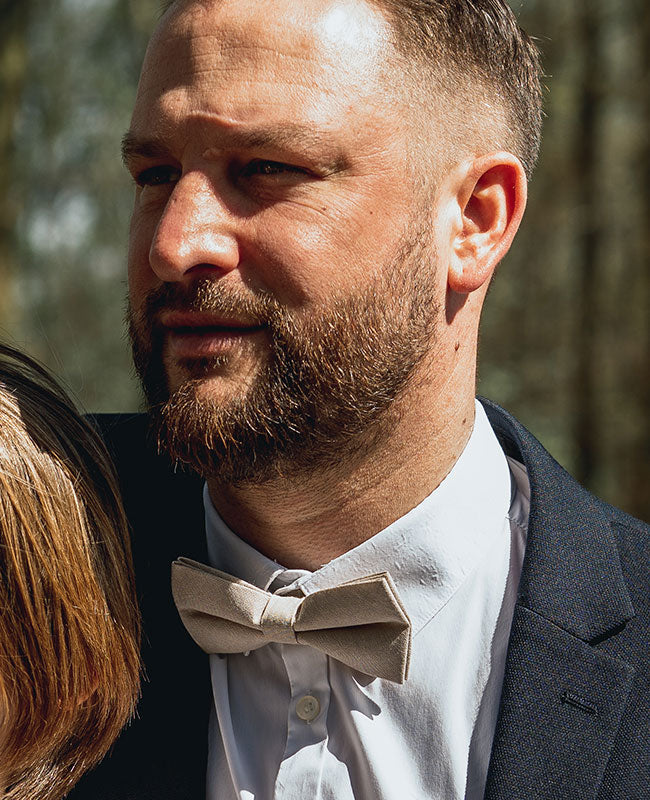 Noeud Papillon + Pochette de Costume Beige Homme en Coton «Edgard»